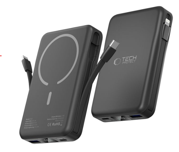 - Powerbank MagSafe z wbudowanymi kablami: Tech-Protect Pb31 Lifemag – lekki, poręczny, zintegrowany kabel – perfekcyjny towarzysz wakacyjnych wojaży.